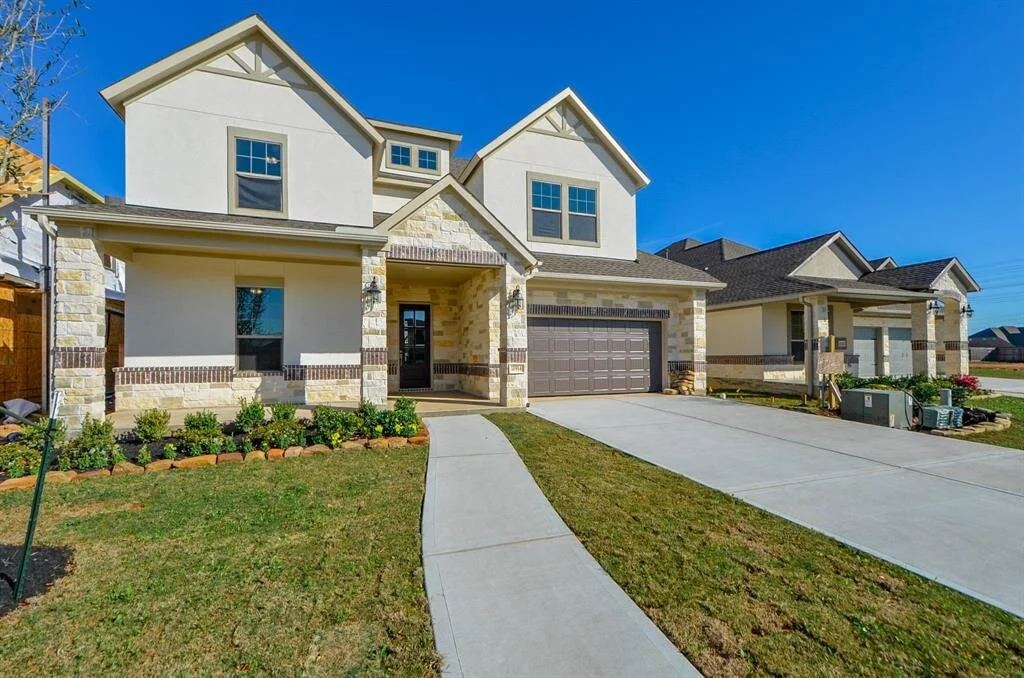 New construction in Lakes of Bella Terra's gated section, Bella Cortile! This design plan offers a spacious front entry courtyard with covered porch, stunning entry foyer with circular staircase, dining room w/ butler's pantry, and spacious great room w/ sloping 19' ceilings! Master suite & mother-in-law suite on the first floor. Master bath w/ stand-alone soaker tub, large walk-in shower, and double-vanity. Second floor features overlook balcony to great room below, two secondary bedrooms, and game room.